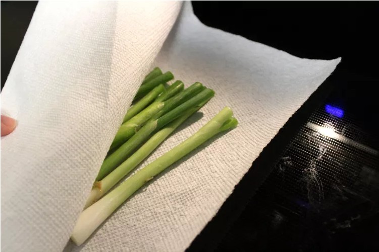 3. 말려준다. 종이 타월을 사용하여 대파를 두드려 과도한 수분을 제거합니다. 이 과정은 대파의 신선함을 유지하는 데 중요합니다.