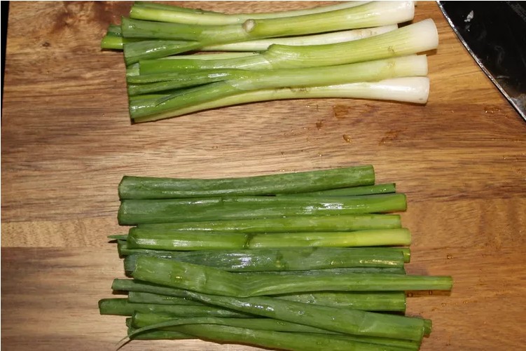 1. 뿌리를 잘라낸다. 먼저 고무 밴드와 기타 포장재를 제거합니다. 대파를 일렬로 세우고 뿌리를 잘라냅니다. 이 뿌리는 나중에 육수나 다른 요리에 사용할 수 있으니 따로 보관해도 좋습니다.
