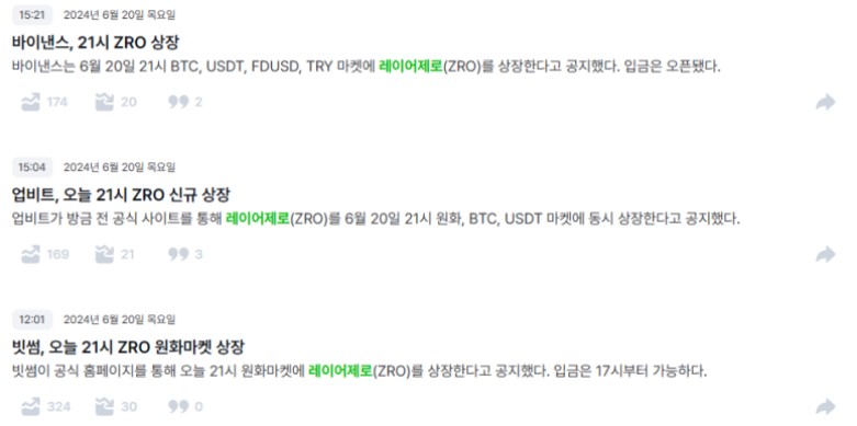 레이어제로 코인은 다음과 같은 주요 거래소에 상장됩니다: