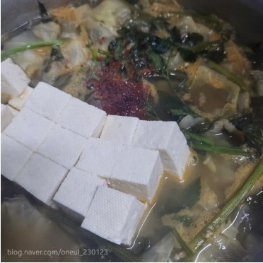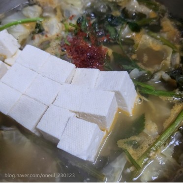 - 양파와 두부를 넣어 끓입니다.