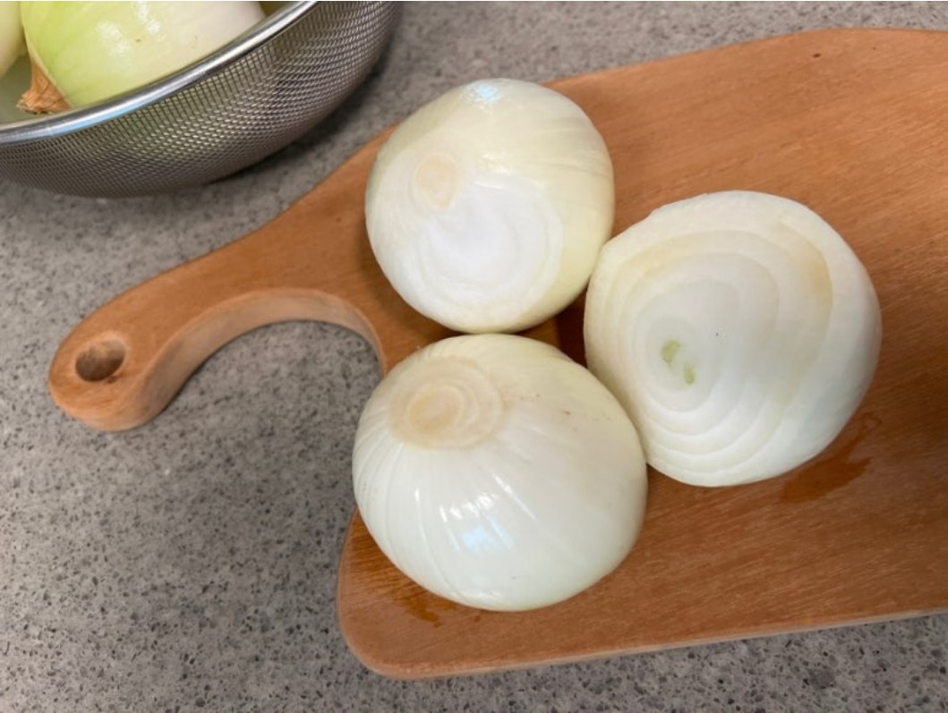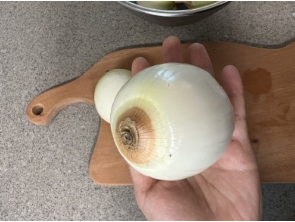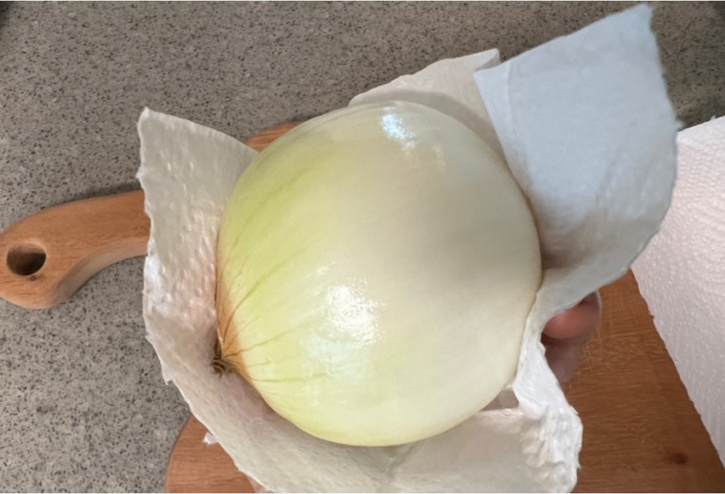 - 물기 제거: 양파를 세척하지 않고 키친타올로 물기를 제거합니다.