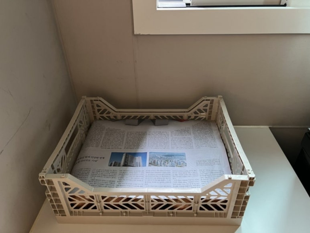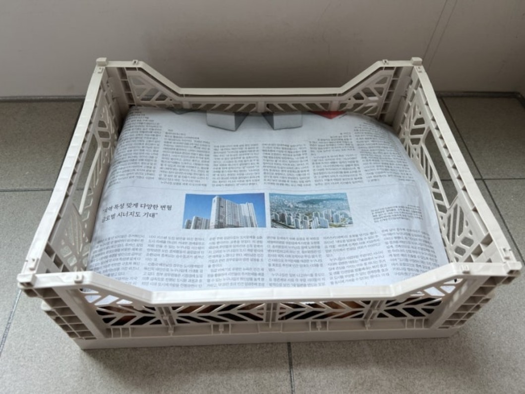 - 신문지 깔기: 바구니나 박스의 바닥에 신문지를 깔아줍니다.