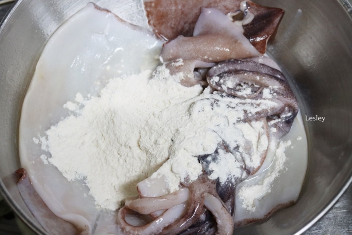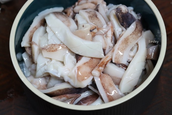 - 밀가루로 세척: 오징어에 밀가루 2~3스푼을 넣고 비린내와 이물질을 제거합니다. 빨판 부분도 깨끗이 세척합니다.