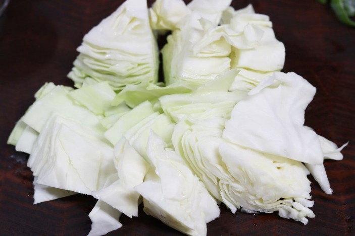 - 양배추: 약 1/4통을 먹기 좋은 크기로 썰어 준비합니다. 식초 물에 담가 세척한 후 깨끗한 물에 2~3번 헹궈줍니다.